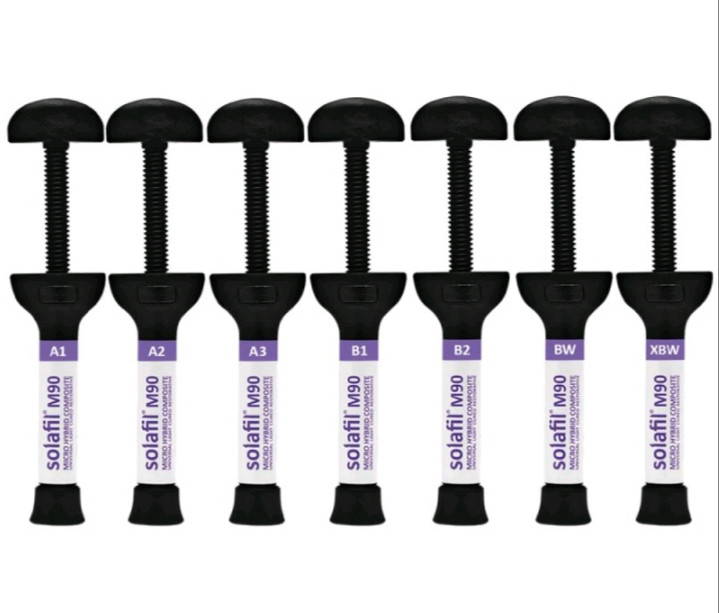سولافیل ام 90 کامپوزیت نوری مایکرو هایبرید با استحکام فشاری بالا برای دندانهای خلفی و قدامی مناسب برای ترمیمهای ونیر و ساخت اینلی و اونلی با استحکام فشاری بیش از ۵۰۰ مگا پاسکال ˛ ساخت انگلستان